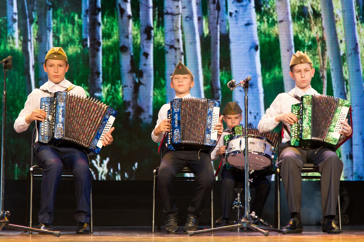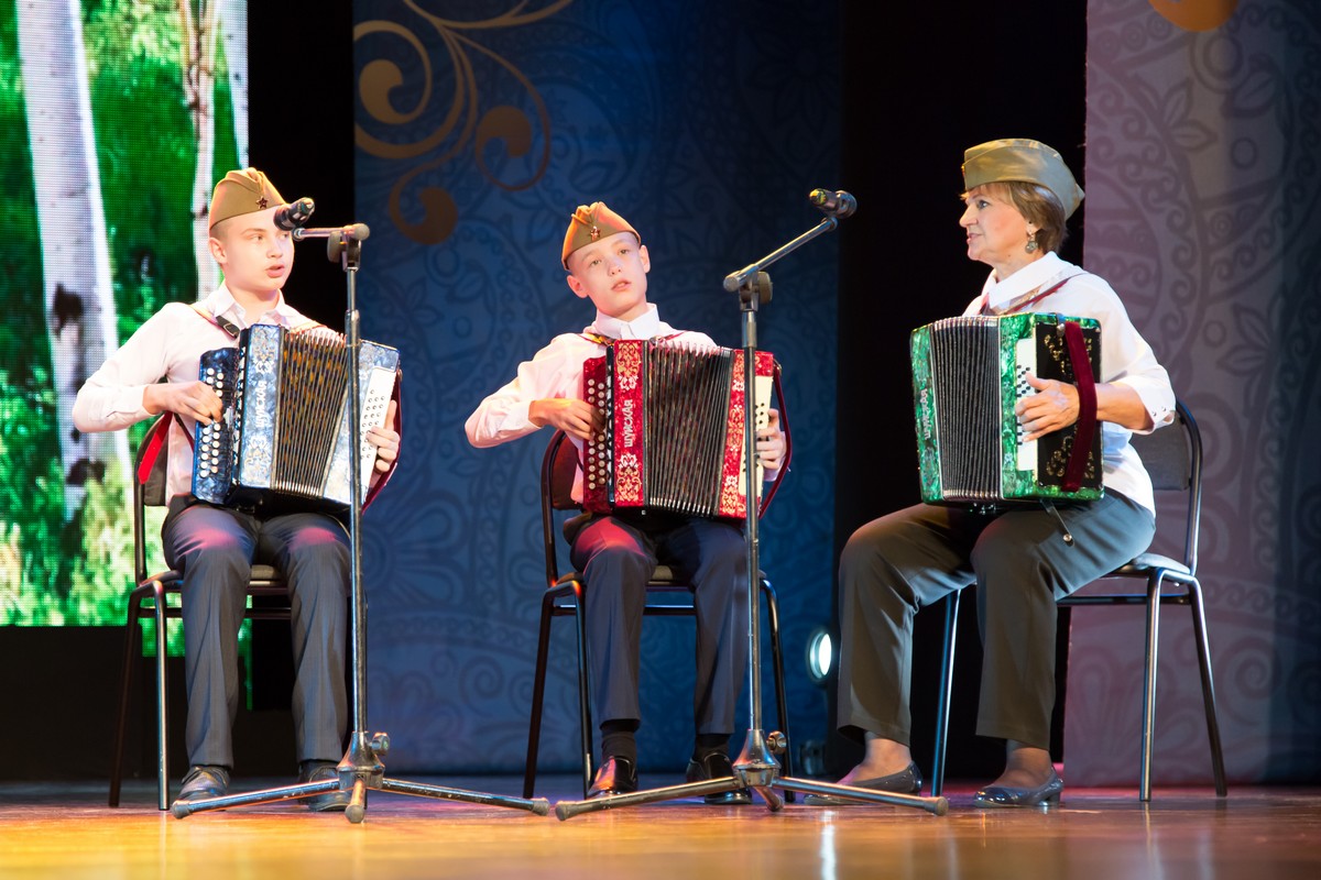 Со сцены прозвучало много песен, посвященных военной тематике. Большинство из них мы знаем с детства и они стали классикой народного творчества - "Катюша", "Под звёздами Балканскими", "Победа, победа!!!" и многие другие.