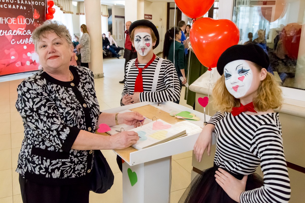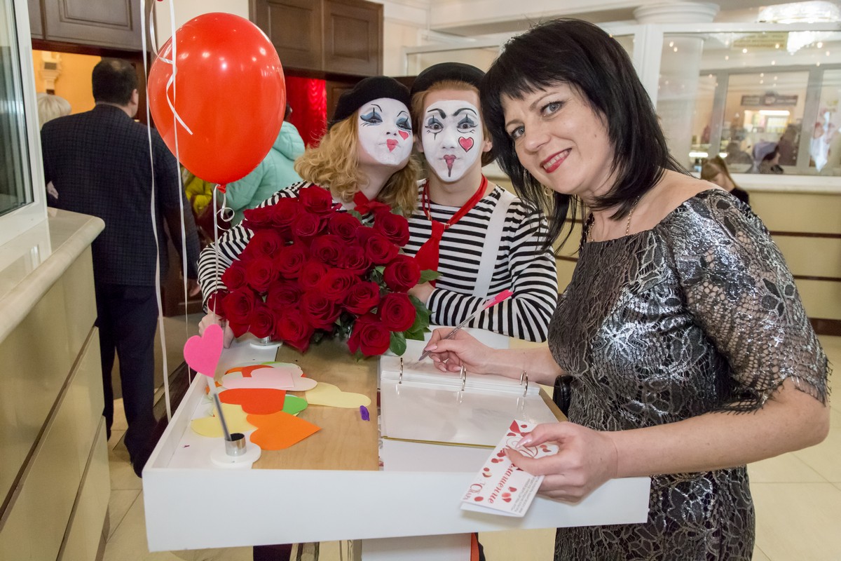 В фойе была расположена фотозона с аниматорами и зона с журналом для пожеланий.