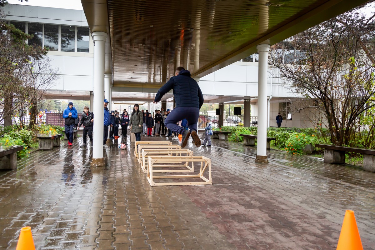 Несмотря на непогоду, под крытым переходом перед главным входом в Краевой Дворец Дружбы "Русь" состоялись еженедельные субботние спортивные состязания. Это стало уже хорошей традицией!
