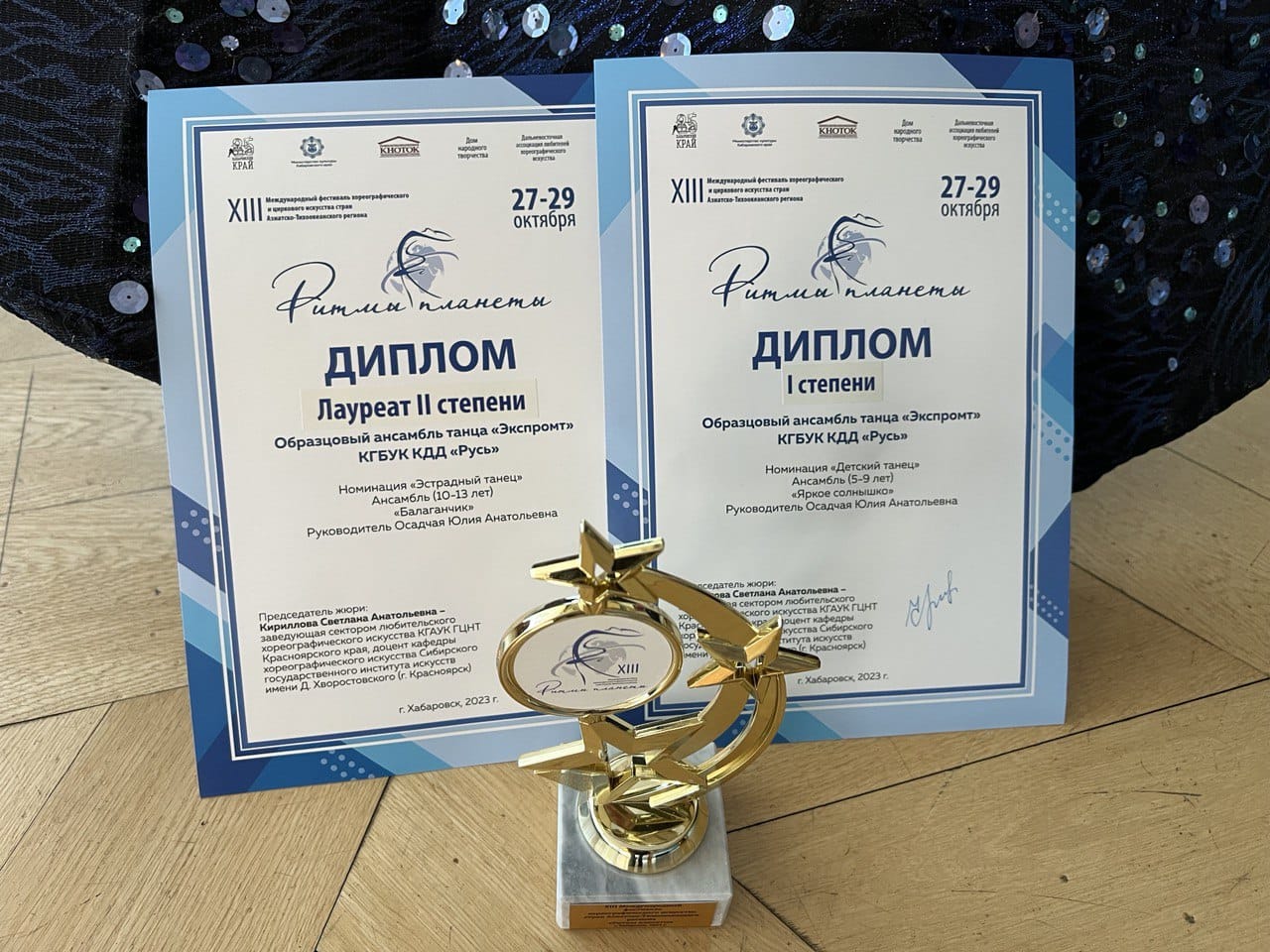 Образцовый ансамбль танца "Экспромт" принял участие в Международном фестивале хореографического и циркового искусства стран Азиатско-Тихоокеанского региона "Ритмы планеты" и стали дипломантами I степени с номером "Яркое солнышко" и лауреатами II степени с работой "Балаганчик". Руководитель студии - Осадчая Юлия Анатольевна.