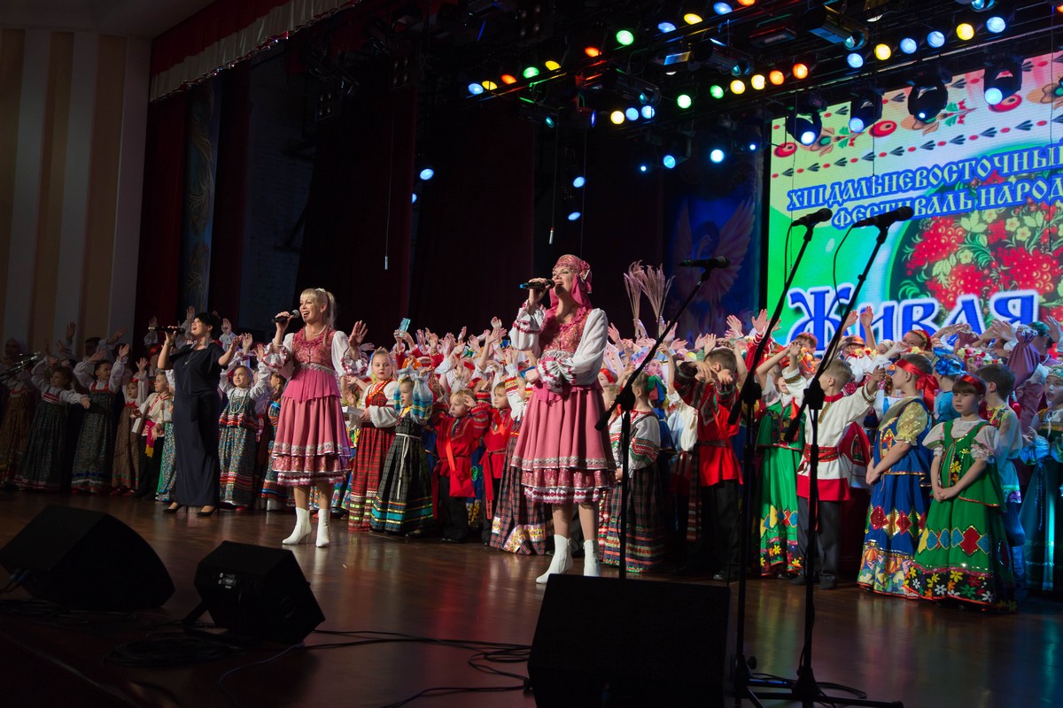 В прошедшие выходные в Краевом Дворце Дружбы «Русь» состоялся XIII Дальневосточный молодёжный фестиваль народной песни «Живая Русь». Участники съехались не только из разных уголков Хабаровского края, но так же из Приморья и Сахалинской области.