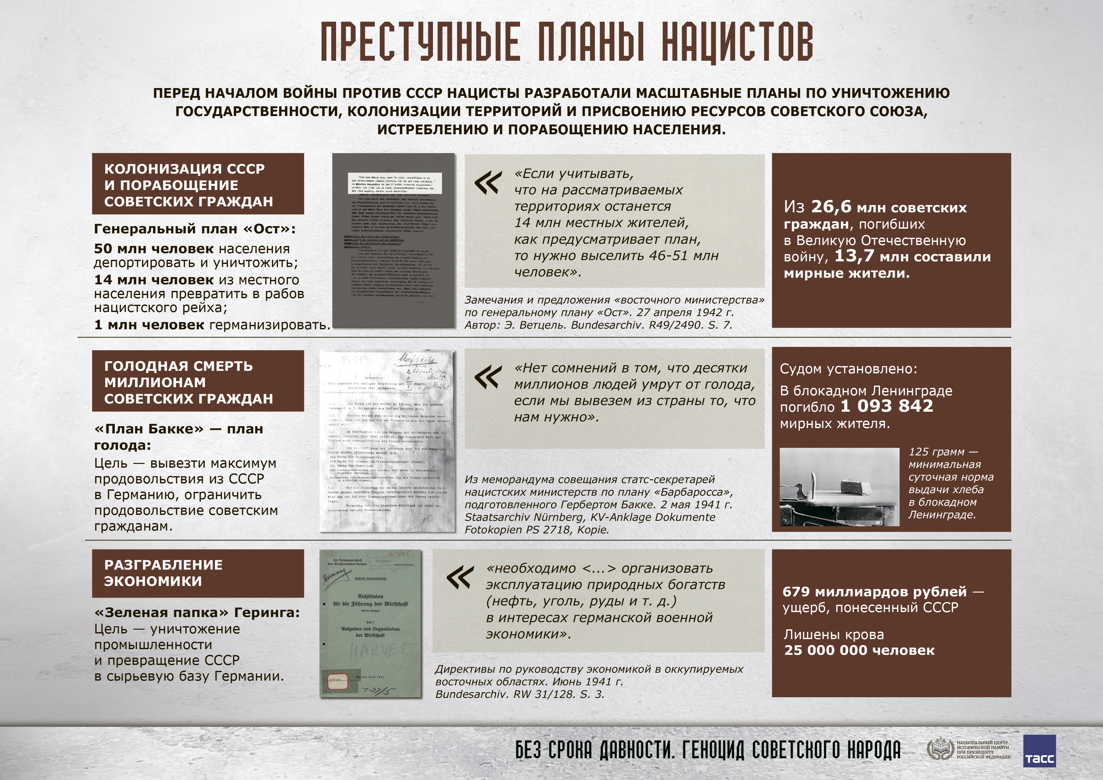 Перед началом войны против СССР нацисты разработали планы «расширения жизненного пространства» за счет территории нашей страны, которые предполагали военный разгром, уничтожение государственности и большинства населения с последующей колонизацией территории.